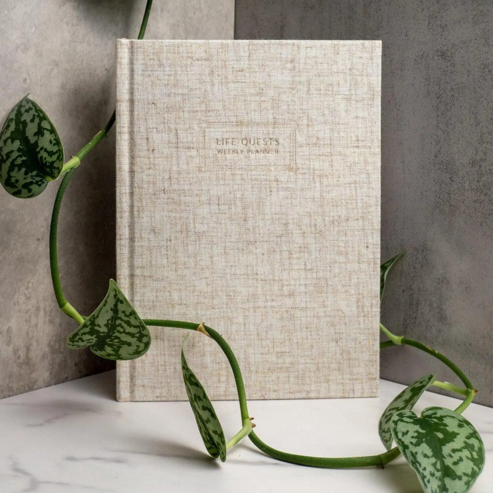 LifeQuest Planner – Nerdy Undated Weekly & Monthly Journal | ADHD-Friendly Linen Hardcover Productivity Planner
